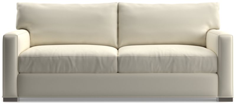 The quality and comfort of our Axis collection is legendary. Casual and inviting, the sleeper sofa offers exceptional, long-lasting durability as a sofa or as a bed. The pull-out queen mattress is ultra comfortable and has a locking, tilt-up headrest for late-night reading or TV viewing. The sofa's angled back and deep seat cushions filled with a plush feather-down blend encourage lounging, while track arms give the sofa the clean look and modern style that make Axis a Crate & Barrel icon.