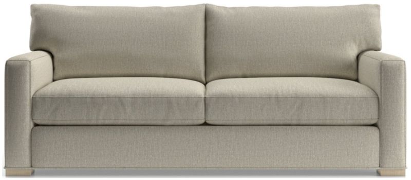 The quality and comfort of our Axis collection is legendary. Casual and inviting, the sleeper sofa offers exceptional, long-lasting durability as a sofa or as a bed. The pull-out queen mattress is ultra comfortable and has a locking, tilt-up headrest for late-night reading or TV viewing. The sofa's angled back and deep seat cushions filled with a plush feather-down blend encourage lounging, while track arms give the sofa the clean look and modern style that make Axis a Crate & Barrel icon.
