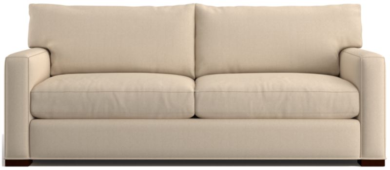 The quality and comfort of our Axis collection is legendary. Casual and inviting, the sofa offers exceptional, long-lasting durability. An angled back and deep seat cushions filled with a plush feather-down blend encourage lounging, while track arms give the sofa the clean look and modern style that make Axis a Crate & Barrel icon.