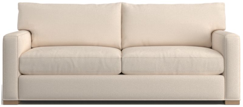 The quality and comfort of our Axis collection is legendary. Casual and inviting, the sofa offers exceptional, long-lasting durability. An angled back and deep seat cushions filled with a plush feather-down blend encourage lounging, while track arms give the sofa the clean look and modern style that make Axis a Crate & Barrel icon.