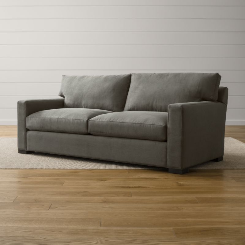 Bring Axis home and watch life revolve around it. This queen sleeper sofa offers laid-back comfort in family rooms, casual living rooms and guest rooms, featuring track arms that create a clean look. Low back cushions and deep seats encourage lounging with family and friends. Not surprisingly, Axis has been a customer favorite for more than a decade—and our most popular sleeper sofa. The Axis Queen Sleeper Sofa is a Crate and Barrel exclusive.