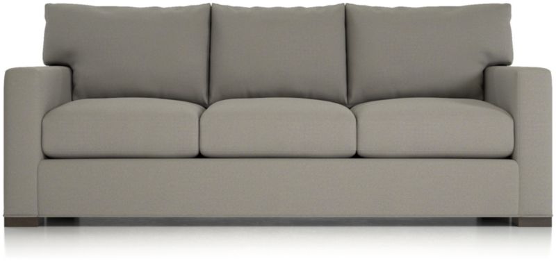 The quality and comfort of our Axis collection is legendary. Casual and inviting, the sleeper sofa offers exceptional, long-lasting durability as a sofa or as a bed. The pull-out queen mattress is ultra comfortable and has a locking, tilt-up headrest for late-night reading or TV viewing. The sofa's angled back and deep seat cushions filled with a plush feather-down blend encourage lounging, while track arms give the sofa the clean look and modern style that make Axis a Crate & Barrel icon.