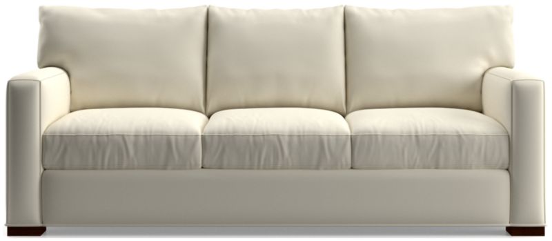 The quality and comfort of our Axis collection is legendary. Casual and inviting, the sleeper sofa offers exceptional, long-lasting durability as a sofa or as a bed. The pull-out queen mattress is ultra comfortable and has a locking, tilt-up headrest for late-night reading or TV viewing. The sofa's angled back and deep seat cushions filled with a plush feather-down blend encourage lounging, while track arms give the sofa the clean look and modern style that make Axis a Crate & Barrel icon.