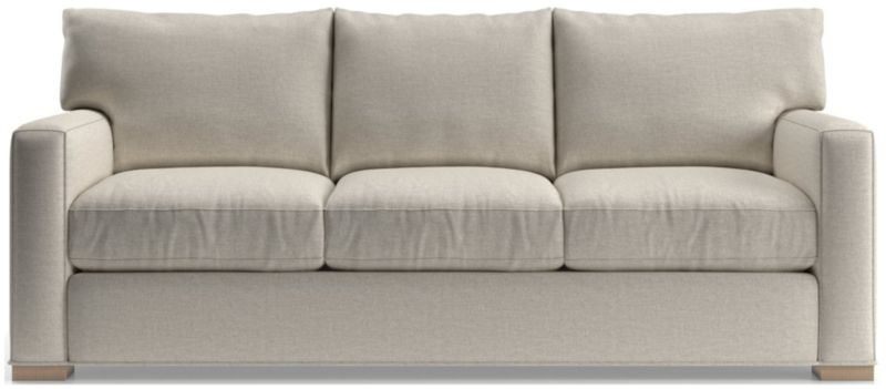 The quality and comfort of our Axis collection is legendary. Casual and inviting, the sofa offers exceptional, long-lasting durability. An angled back and deep seat cushions filled with a plush feather-down blend encourage lounging, while track arms give the sofa the clean look and modern style that make Axis a Crate & Barrel icon.