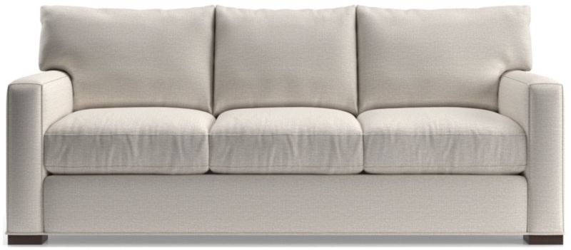 The quality and comfort of our Axis collection is legendary. Casual and inviting, the sofa offers exceptional, long-lasting durability. An angled back and deep seat cushions filled with a plush feather-down blend encourage lounging, while track arms give the sofa the clean look and modern style that make Axis a Crate & Barrel icon.