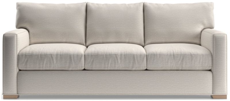 The quality and comfort of our Axis collection is legendary. Casual and inviting, the sofa offers exceptional, long-lasting durability. An angled back and deep seat cushions filled with a plush feather-down blend encourage lounging, while track arms give the sofa the clean look and modern style that make Axis a Crate & Barrel icon.