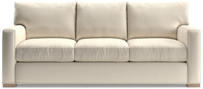 The quality and comfort of our Axis collection is legendary. Casual and inviting, the sofa offers exceptional, long-lasting durability. An angled back and deep seat cushions filled with a plush feather-down blend encourage lounging, while track arms give the sofa the clean look and modern style that make Axis a Crate & Barrel icon.
