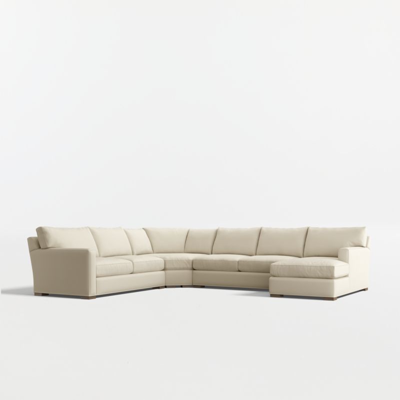 The quality and comfort of our Axis collection is legendary. Casual and inviting, the sectional offers exceptional, long-lasting durability. Angled backs and deep seat cushions filled with a plush feather-down blend encourage lounging, while track arms give the sectional the clean look and modern style that make Axis a Crate & Barrel icon.