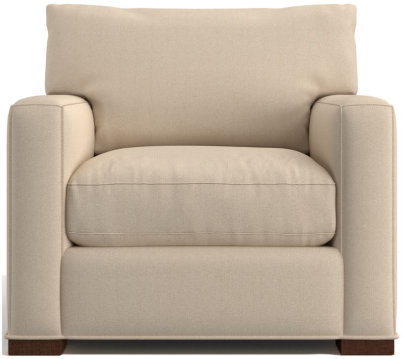 The quality and comfort of our Axis collection is legendary. Casual and inviting, the chair offers exceptional, long-lasting durability. An angled back and deep seat cushion filled with a plush feather-down blend encourage lounging, while track arms give the chair the clean look and modern style that make Axis a Crate & Barrel icon.