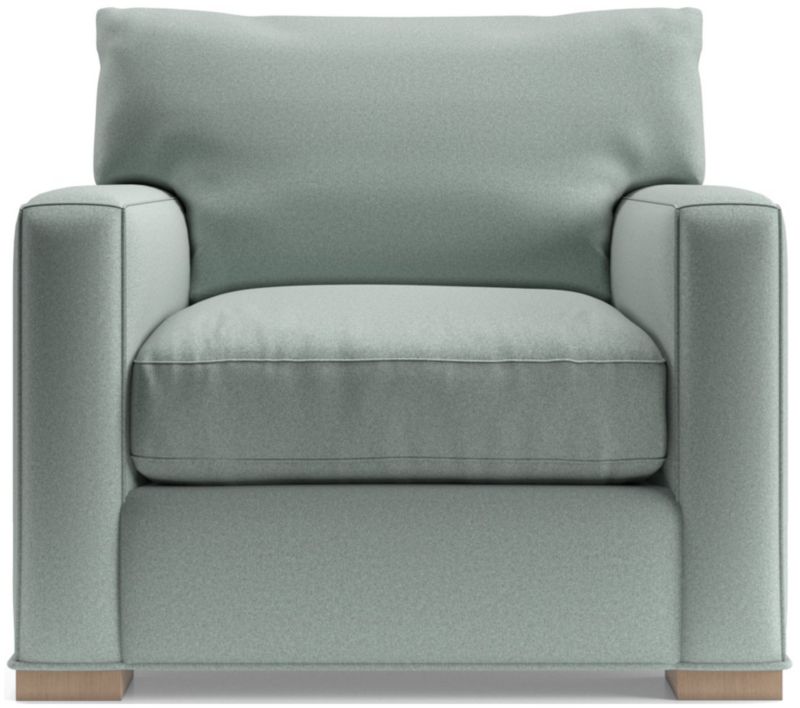 The quality and comfort of our Axis collection is legendary. Casual and inviting, the chair offers exceptional, long-lasting durability. An angled back and deep seat cushion filled with a plush feather-down blend encourage lounging, while track arms give the chair the clean look and modern style that make Axis a Crate & Barrel icon.