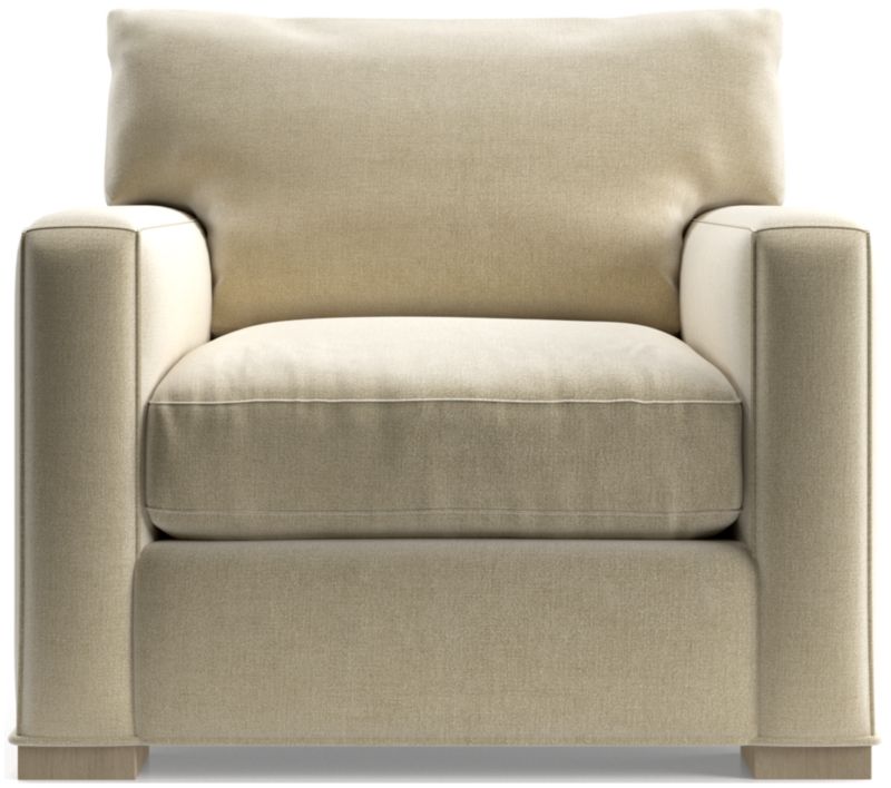 The quality and comfort of our Axis collection is legendary. Casual and inviting, the chair offers exceptional, long-lasting durability. An angled back and deep seat cushion filled with a plush feather-down blend encourage lounging, while track arms give the chair the clean look and modern style that make Axis a Crate & Barrel icon.