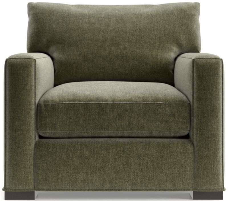 The quality and comfort of our Axis collection is legendary. Casual and inviting, the chair offers exceptional, long-lasting durability. An angled back and deep seat cushion filled with a plush feather-down blend encourage lounging, while track arms give the chair the clean look and modern style that make Axis a Crate & Barrel icon.