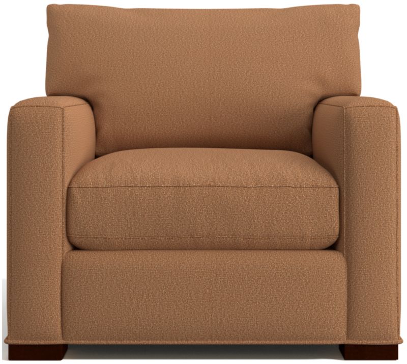 The quality and comfort of our Axis collection is legendary. Casual and inviting, the chair offers exceptional, long-lasting durability. An angled back and deep seat cushion filled with a plush feather-down blend encourage lounging, while track arms give the chair the clean look and modern style that make Axis a Crate & Barrel icon.