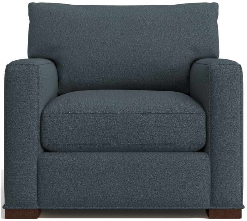 The quality and comfort of our Axis collection is legendary. Casual and inviting, the chair offers exceptional, long-lasting durability. An angled back and deep seat cushion filled with a plush feather-down blend encourage lounging, while track arms give the chair the clean look and modern style that make Axis a Crate & Barrel icon.