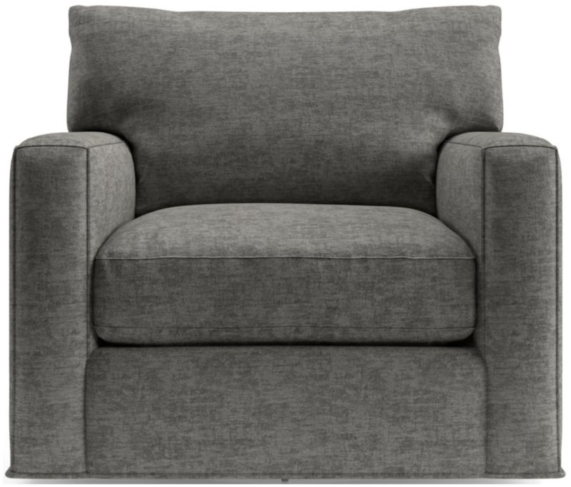The quality and comfort of our Axis collection is legendary. Casual and inviting, the swivel chair offers exceptional, long-lasting durability. An angled back and deep seat cushion filled with a plush feather-down blend encourage lounging, while track arms give the chair the clean look and modern style that make Axis a Crate & Barrel icon.