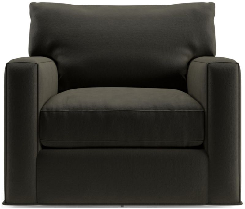 The quality and comfort of our Axis collection is legendary. Casual and inviting, the swivel chair offers exceptional, long-lasting durability. An angled back and deep seat cushion filled with a plush feather-down blend encourage lounging, while track arms give the chair the clean look and modern style that make Axis a Crate & Barrel icon.