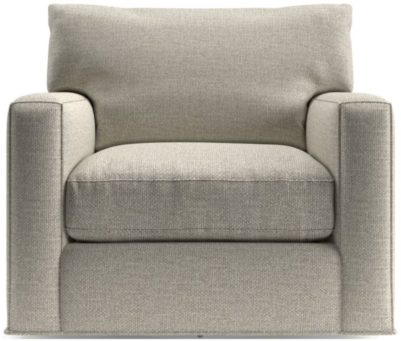 The quality and comfort of our Axis collection is legendary. Casual and inviting, the swivel chair offers exceptional, long-lasting durability. An angled back and deep seat cushion filled with a plush feather-down blend encourage lounging, while track arms give the chair the clean look and modern style that make Axis a Crate & Barrel icon.