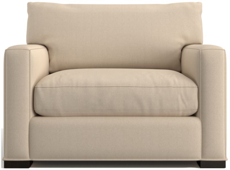 The quality and comfort of our Axis collection is legendary. Casual and inviting, the chair offers exceptional, long-lasting durability. An angled back and deep seat cushion filled with a plush feather-down blend encourage lounging, while track arms give the chair the clean look and modern style that make Axis a Crate & Barrel icon.