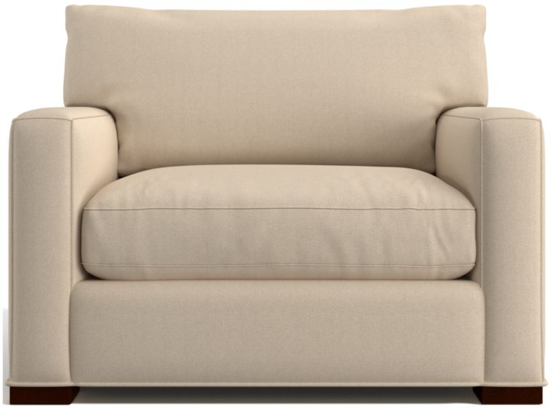 The quality and comfort of our Axis collection is legendary. Casual and inviting, the chair offers exceptional, long-lasting durability. An angled back and deep seat cushion filled with a plush feather-down blend encourage lounging, while track arms give the chair the clean look and modern style that make Axis a Crate & Barrel icon.