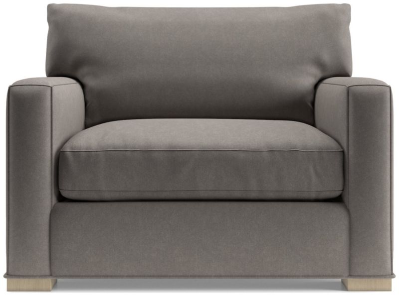 The quality and comfort of our Axis collection is legendary. Casual and inviting, the chair offers exceptional, long-lasting durability. An angled back and deep seat cushion filled with a plush feather-down blend encourage lounging, while track arms give the chair the clean look and modern style that make Axis a Crate & Barrel icon.
