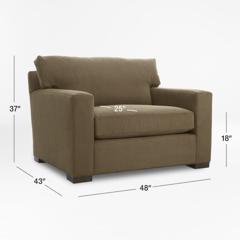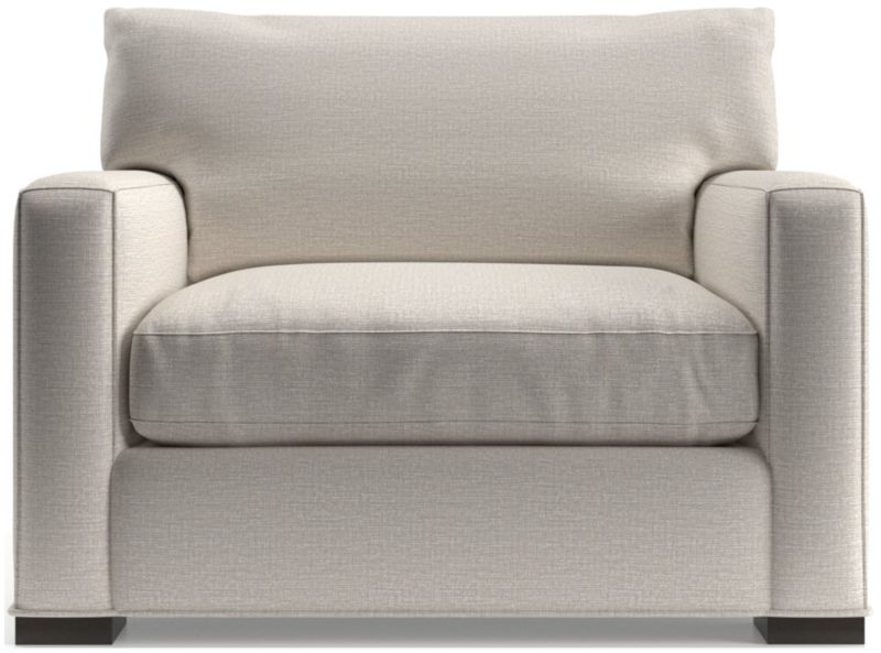 The quality and comfort of our Axis collection is legendary. Casual and inviting, the chair offers exceptional, long-lasting durability. An angled back and deep seat cushion filled with a plush feather-down blend encourage lounging, while track arms give the chair the clean look and modern style that make Axis a Crate & Barrel icon.