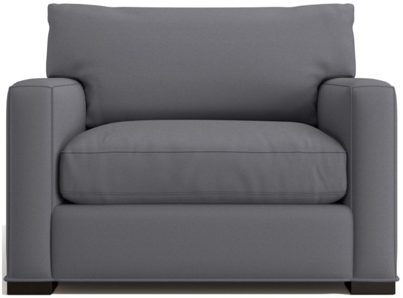 The quality and comfort of our Axis collection is legendary. Casual and inviting, the chair offers exceptional, long-lasting durability. An angled back and deep seat cushion filled with a plush feather-down blend encourage lounging, while track arms give the chair the clean look and modern style that make Axis a Crate & Barrel icon.