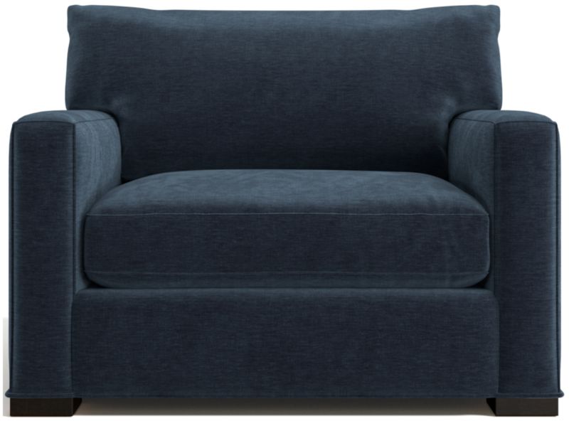 The quality and comfort of our Axis collection is legendary. Casual and inviting, the chair offers exceptional, long-lasting durability. An angled back and deep seat cushion filled with a plush feather-down blend encourage lounging, while track arms give the chair the clean look and modern style that make Axis a Crate & Barrel icon.