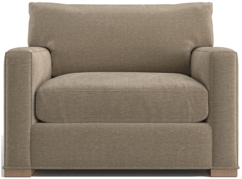 The quality and comfort of our Axis collection is legendary. Casual and inviting, the chair offers exceptional, long-lasting durability. An angled back and deep seat cushion filled with a plush feather-down blend encourage lounging, while track arms give the chair the clean look and modern style that make Axis a Crate & Barrel icon.