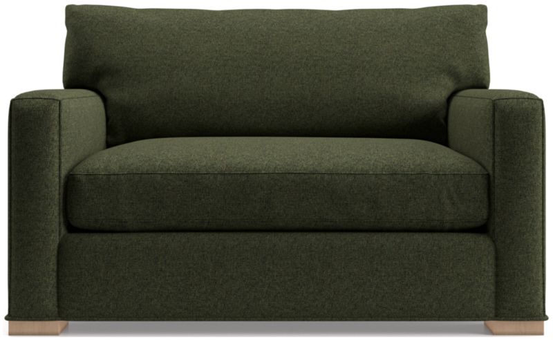 The quality and comfort of our Axis collection is legendary. Casual and inviting, the chair offers exceptional, long-lasting durability. An angled back and deep seat cushion filled with a plush feather-down blend encourage lounging, while track arms give the chair the clean look and modern style that make Axis a Crate & Barrel icon.