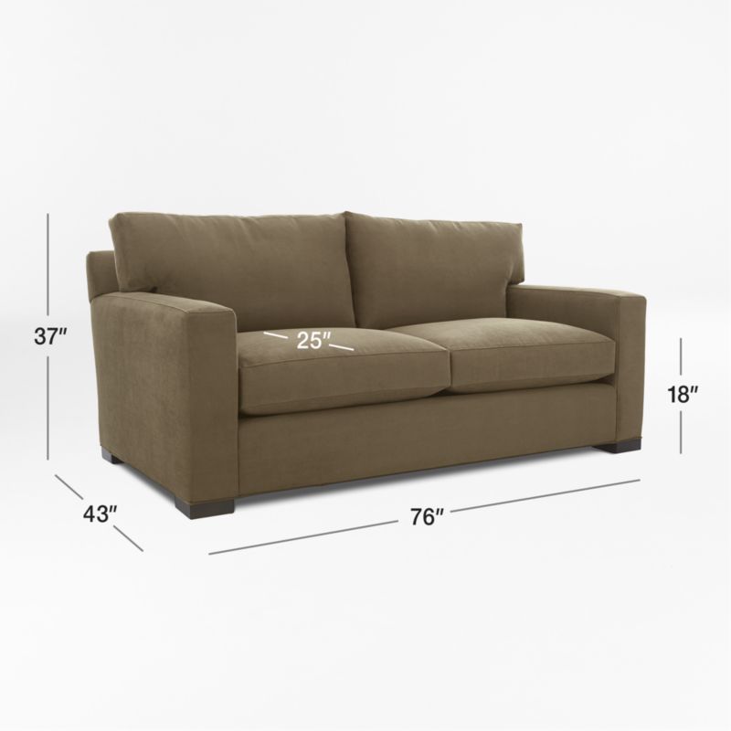 The quality and comfort of our Axis collection is legendary. Casual and inviting, the sofa offers exceptional, long-lasting durability. An angled back and deep seat cushions filled with a plush feather-down blend encourage lounging, while track arms give the sofa the clean look and modern style that make Axis a Crate & Barrel icon.