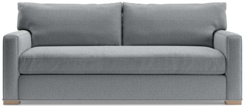Same easygoing appeal, same pile-on comfort, and a sleek new bench cushion for this enduring customer favorite. Axis is well-loved for its deep seats and low back cushions that encourage lounging in family rooms and casual living rooms. The sofa looks refreshed with shale-stained maple legs and a hardworking chenille fabric with a hint of texture and a soft hand. The Axis bench-seat sofa is a Crate & Barrel exclusive.