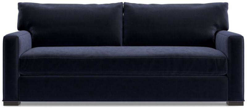 Same easygoing appeal, same pile-on comfort, and a sleek new bench cushion for this enduring customer favorite. Axis is well-loved for its deep seats and low back cushions that encourage lounging in family rooms and casual living rooms. The sofa looks refreshed with shale-stained maple legs and a hardworking chenille fabric with a hint of texture and a soft hand. The Axis bench-seat sofa is a Crate & Barrel exclusive.