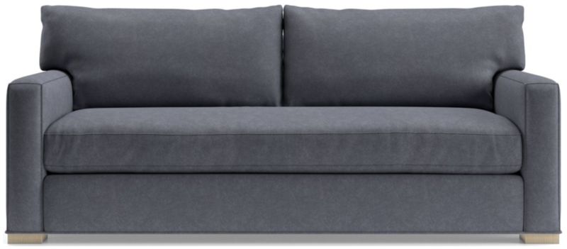 Same easygoing appeal, same pile-on comfort, and a sleek new bench cushion for this enduring customer favorite. Axis is well-loved for its deep seats and low back cushions that encourage lounging in family rooms and casual living rooms. The sofa looks refreshed with shale-stained maple legs and a hardworking chenille fabric with a hint of texture and a soft hand. The Axis bench-seat sofa is a Crate & Barrel exclusive.