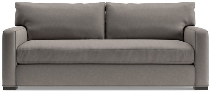 Same easygoing appeal, same pile-on comfort, and a sleek new bench cushion for this enduring customer favorite. Axis is well-loved for its deep seats and low back cushions that encourage lounging in family rooms and casual living rooms. The sofa looks refreshed with shale-stained maple legs and a hardworking chenille fabric with a hint of texture and a soft hand. The Axis bench-seat sofa is a Crate & Barrel exclusive.