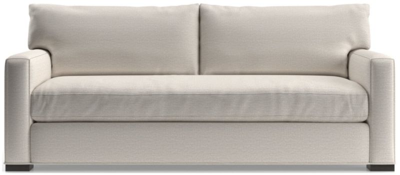 Same easygoing appeal, same pile-on comfort, and a sleek new bench cushion for this enduring customer favorite. Axis is well-loved for its deep seats and low back cushions that encourage lounging in family rooms and casual living rooms. The sofa looks refreshed with shale-stained maple legs and a hardworking chenille fabric with a hint of texture and a soft hand. The Axis bench-seat sofa is a Crate & Barrel exclusive.