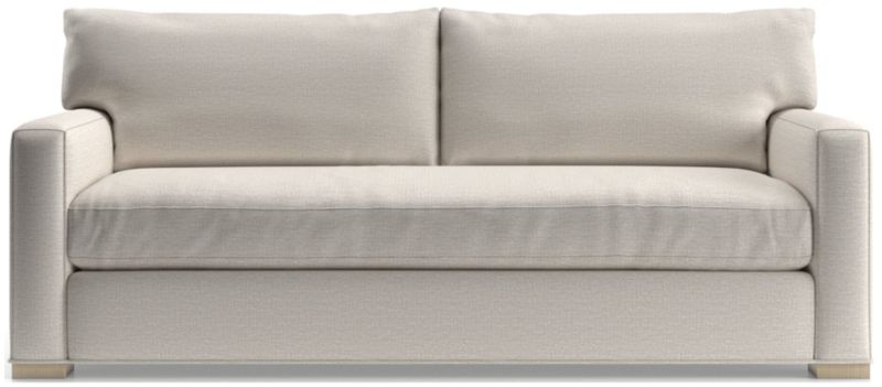Same easygoing appeal, same pile-on comfort, and a sleek new bench cushion for this enduring customer favorite. Axis is well-loved for its deep seats and low back cushions that encourage lounging in family rooms and casual living rooms. The sofa looks refreshed with shale-stained maple legs and a hardworking chenille fabric with a hint of texture and a soft hand. The Axis bench-seat sofa is a Crate & Barrel exclusive.