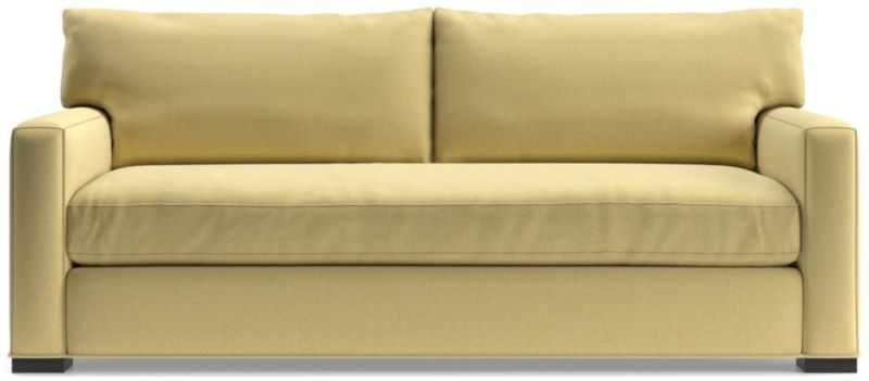 Same easygoing appeal, same pile-on comfort, and a sleek new bench cushion for this enduring customer favorite. Axis is well-loved for its deep seats and low back cushions that encourage lounging in family rooms and casual living rooms. The sofa looks refreshed with shale-stained maple legs and a hardworking chenille fabric with a hint of texture and a soft hand. The Axis bench-seat sofa is a Crate & Barrel exclusive.