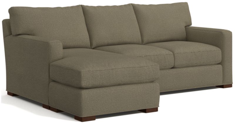 The quality and comfort of our Axis collection is legendary. Casual and inviting, the lounger offers exceptional, long-lasting durability. The sofa creates the look of a sectional with a smaller footprint and more flexibility—simply move the storage ottoman to the left or right side of the sofa and flip the chaise cushion. An angled back and deep seat cushions filled with a plush feather-down blend encourage lounging, while track arms give the sofa the clean look and modern style that make Axis a Crate & Barrel icon.