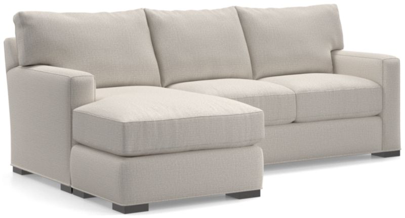 The quality and comfort of our Axis collection is legendary. Casual and inviting, the lounger offers exceptional, long-lasting durability. The sofa creates the look of a sectional with a smaller footprint and more flexibility—simply move the storage ottoman to the left or right side of the sofa and flip the chaise cushion. An angled back and deep seat cushions filled with a plush feather-down blend encourage lounging, while track arms give the sofa the clean look and modern style that make Axis a Crate & Barrel icon.