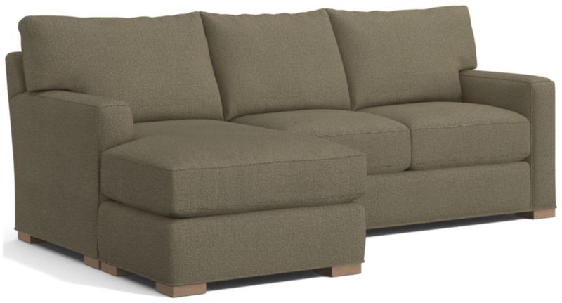 The quality and comfort of our Axis collection is legendary. Casual and inviting, the lounger offers exceptional, long-lasting durability. The sofa creates the look of a sectional with a smaller footprint and more flexibility—simply move the storage ottoman to the left or right side of the sofa and flip the chaise cushion. An angled back and deep seat cushions filled with a plush feather-down blend encourage lounging, while track arms give the sofa the clean look and modern style that make Axis a Crate & Barrel icon.