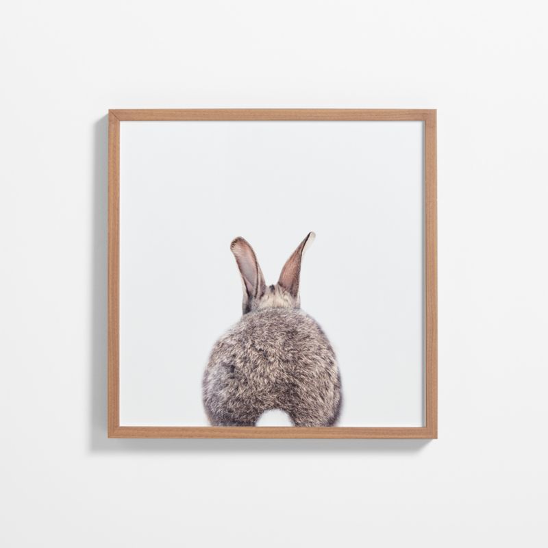Up close and personal, our adorable photo portraits show off the undeniable "awww" factor of baby animals. Snapped against a white background, a young rabbit presents his back side to show off its brown fur and adorable cotton-ball tail. This giclée print of the original Gal Design photo is framed in walnut wood for a graphic and contemporary look. Do a fore-and-aft arrangement with the coordinating baby bunny front view or create a gallery group for an enchanting menagerie.