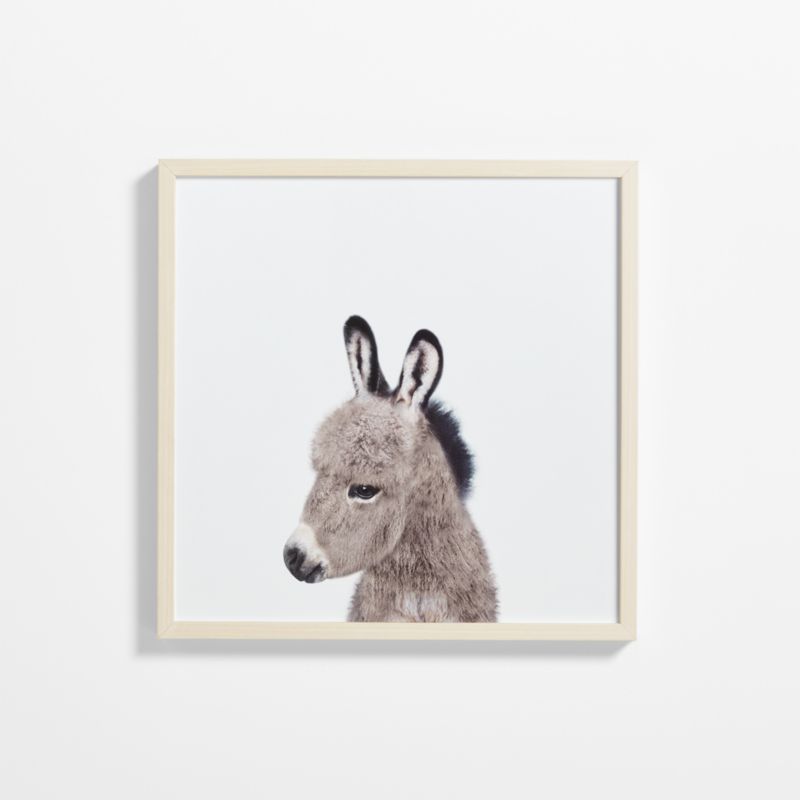 Up close and personal, our adorable photo portraits show off the undeniable "awww" factor of baby animals. Snapped against a white background, a young donkey poses in three-quarter's view so we can appreciate its brushy mane and adorable muzzle. This giclée print of the original Gal Design photo is framed in maple wood for a graphic and contemporary look. Hang our winsome foal alone or as part of a gallery group for an enchanting menagerie.