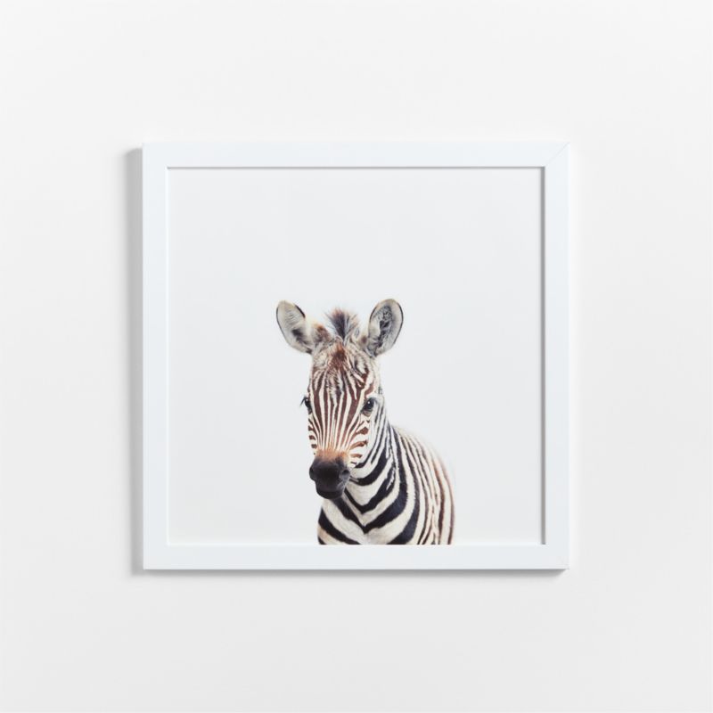 Up close and personal, our adorable photo portraits show off the undeniable "awww" factor of baby animals. Snapped against a white background, a young zebra looks right into the camera to show off its brushy forelock and impressive black-and-white stripes. Each giclée print of the original Gal Design photo is framed in white wood for a graphic and contemporary look. Hang our winsome foal alone or as part of a gallery group for an enchanting menagerie.