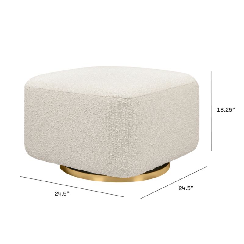 Designed to pair perfectly with the Babyletto Kiwi Power Recliner Chair, the Kiwi Gliding Ottoman provides nurseries with sleek, modern style and comfort. The metallic gold-finished base gently glides back and forth, matching the motion of the recliner. The ottoman was crafted and upholstered by hand in texture-rich boucle fabric.