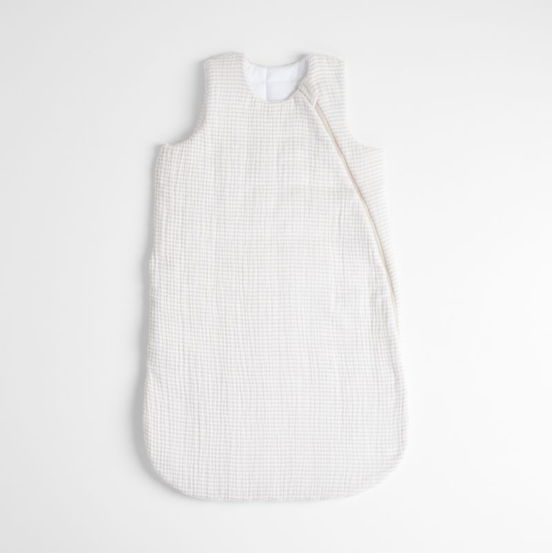 Make naptime and bedtime extra comfy with our supersoft sleeping sack made of 100% organic cotton. The natural hued crinkle gauze material with sweet microstripes adds a charming touch to the wearable blanket, and it's lined with oh-so-soft organic cotton jersey to keep little ones snug and cozy.