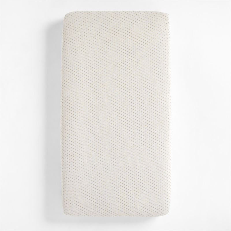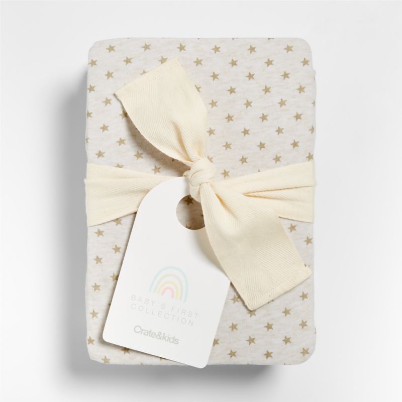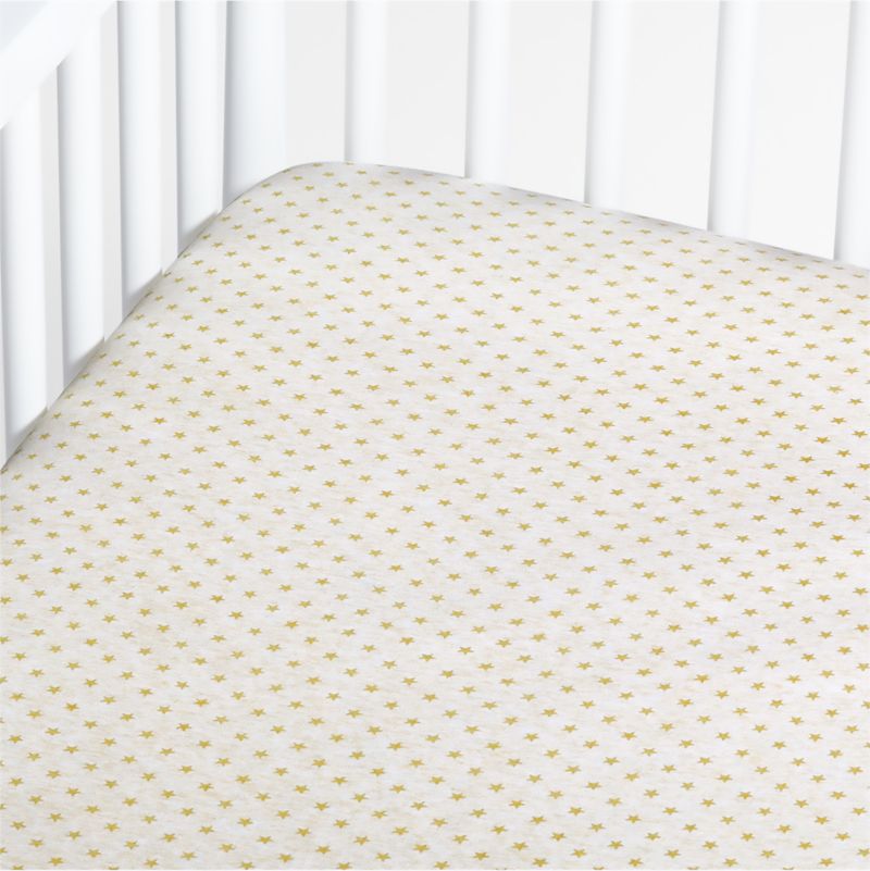 With the same coziness as your most coveted worn-in cotton tee, our supremely soft cotton heathered jersey makes a natural choice for baby bedding that soothes and comforts. In a natural beige palette that feels fresh and modern, our star-strewn fitted crib sheet is made of organic cotton that's extra-gentle on sensitive skin. Pair the crib sheet with any of the colors and patterns in our Organic Heathered Jersey baby bedding collection that's made for mixing and matching to your heart's content.