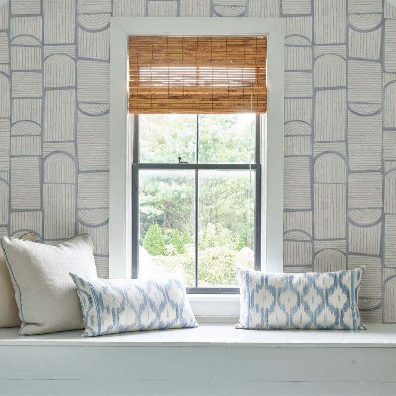 Inspired by the architecture of London's Bloomsbury neighborhood, this geometric wallpaper by Backdrop pairs a playful collage of cool-colored arches and rounded rectangular forms with textured linework. Based on handcrafted art, the wallpaper is printed with subtle texture on a non-woven material. Its design-forward pattern is the perfect way to style up a kid's sleep space or playroom.