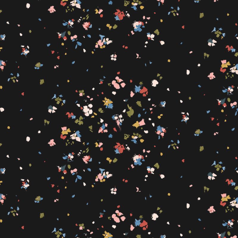 This whimsical wallpaper by Backdrop is based on a handpainted work of art created with thick paint and a palette knife. Painterly, abstract petals fall and gather on a black backdrop, creating a beautiful mural-like effect in kids' bedrooms or playrooms. The wallpaper is printed with subtle texture on a non-woven material. Its design-forward pattern adds dimension to a kid's sleep space or playroom.