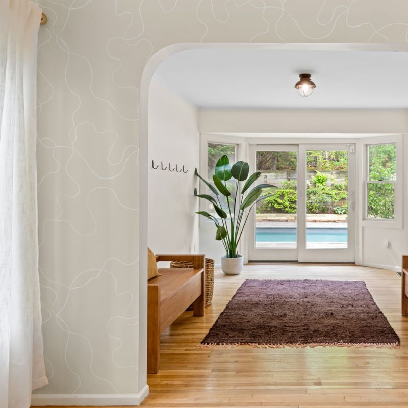 Modeled after the winding French Alpine road Col de Turini, this wallpaper design by Backdrop is full of white lines that twist and turn on a neutral light beige background. Playful curves create movement and dimension while remaining delicate and detailed. Based on handcrafted art and printed on a non-woven material, the wallpaper adds a touch of abstract style to reading nooks, playrooms or bedrooms.