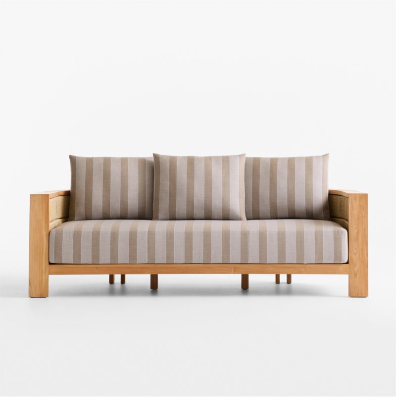 Bali 86" Natural Teak Outdoor Sofa with Range Dune Stripe Sunbrella ® Cushions